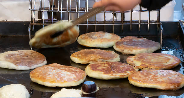 호떡은 한국의 전통적인 디저트로, 달콤한 속을 갖춘 원형의 빵입니다. 주로 겨울철 추운 날씨에 길거리 노점상에서 많이 사먹는 호떡은 주로 밀가루, 소금, 효모로 만든 반죽 안에 설탕을 베이스로 한 속재료를 넣고 기름에 구워 만듭니다. 이렇게 만들면 내부에 넣은 설탕이 녹아서 외부는 바삭하고 내부는 부드럽게 만들어지며 달콤한 맛을 느낄 수 있습니다. 기호에 따라 호떡 속에 양배추, 당근, 파 등의 다양한 야채를 넣어서 야채호떡으로도 만들어 먹습니다.